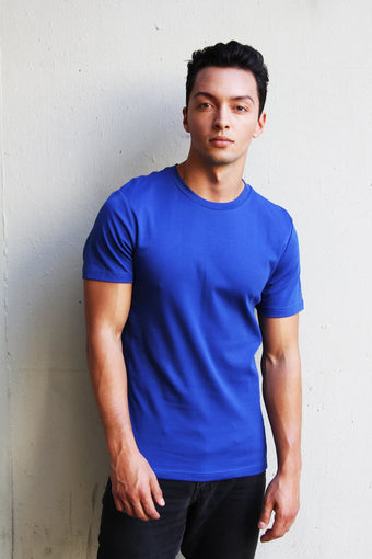 An eye-catching crew-neck cut that is powerful enough to stand alone and understated enough to pair with a dinner jacket for a statement in casual elegance. The 100% Liquid Feel Cotton creates a silky soft feel and high luster. Side panels create long, shaded vertical lines to visibly lean and lengthen your look, while retaining its perfect shape as your body flexes and moves comfortably.