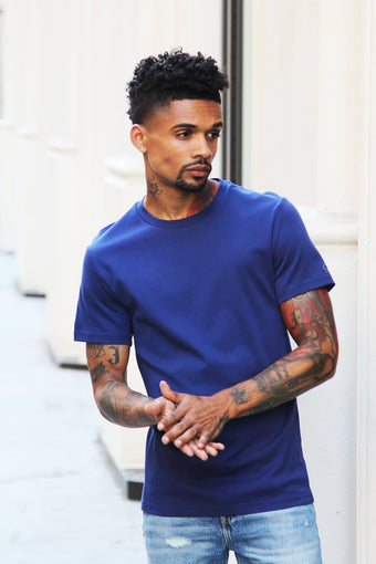 An eye-catching crew-neck cut that is powerful enough to stand alone and understated enough to pair with a dinner jacket for a statement in casual elegance. 100% Liquid Feel Cotton for a silky soft feel and high luster. Side panels of 100% Liquid Feel Cotton Rib create long, shaded vertical lines to visibly lean and lengthen your look, while retaining its perfect shape as your body flexes and moves comfortably.