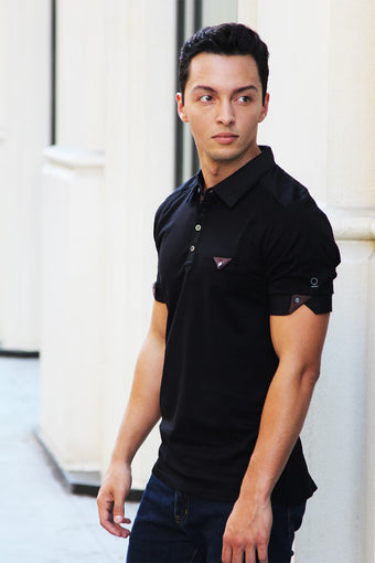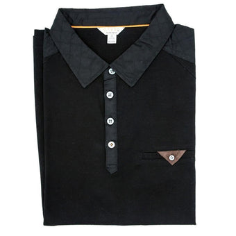 100% Mercerized Cotton for a smooth soft, luxury feel, high luster, fiber strength, and bright deep colors. Side panels of 100% Mercerized Cotton Pique create long shaded lines down the shirt to visibly lean and lengthen your look. Finished with 100% Cotton Woven trim: stitched yoke, cuff, stitched collar, placket; and synthetic leather tabs: pocket, cuff, and placket facing.